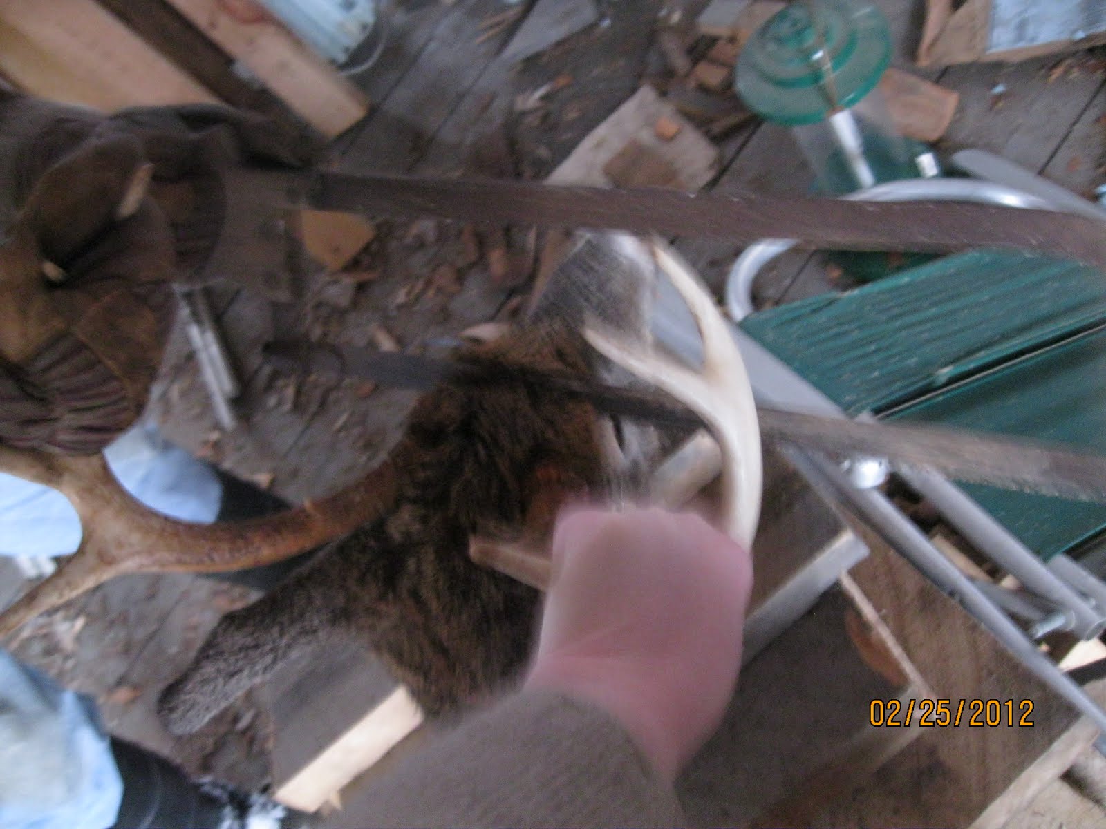 I priced out having someone else mount my antlers for me and decided that Dad and I can handle it. We are independent like that. So on Saturday, we cut off the antlers to my deer to begin making the mount for them.