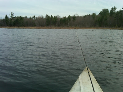 Rabid was telling me about his fishing adventures with Duckhunter over the past week and how they were catching great fish. About 5 minutes after we pushed off from shore, Rabid had a small fish on his line. Too small, so he let it go. All I really wanted, was to take a fish home after going home empty handed when I went ice fishing.