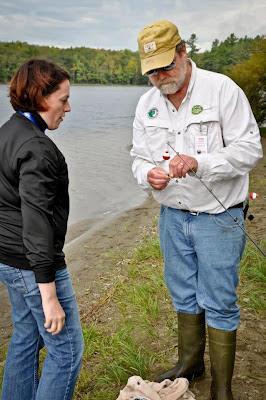 Don had us piece together our rods, tie on the hook, a small sinker and a bobber. Then it was off to the water’s edge to catch fish.