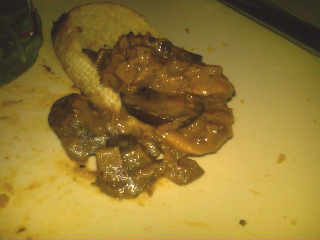 Dish 4: Venison Stroganoff with Crimini Mushrooms over crostini -