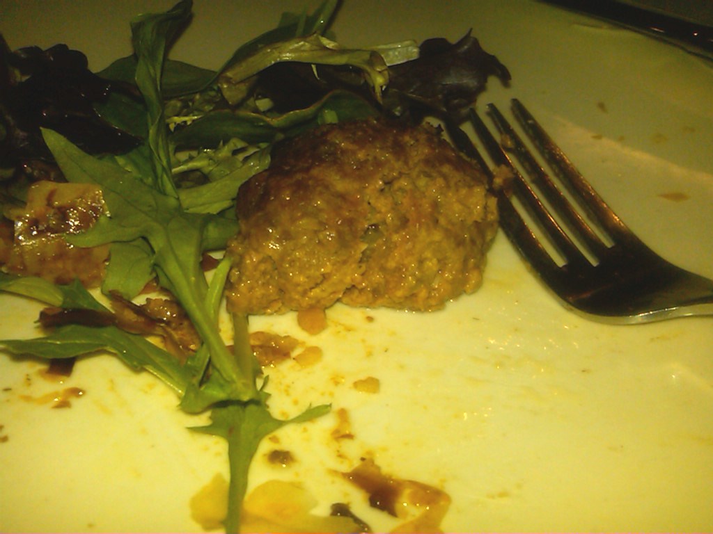 I don't like spicy food unless I am sick and need to knock the illness out of me. Having a baby that would do more cartwheels than he already does if I ate this whole spicy meatball convinced me to try a bite and pass it on to Hubby. It was good and probably in some red sauce with spaghetti, it would be really good. As a stand alone dish, it was a little too much for me.
