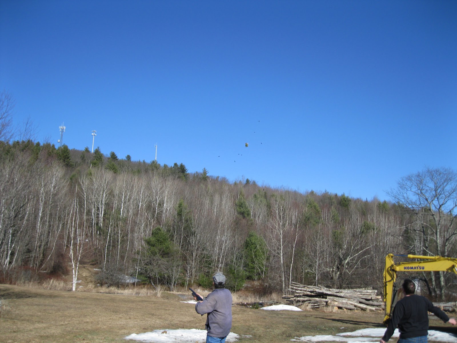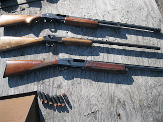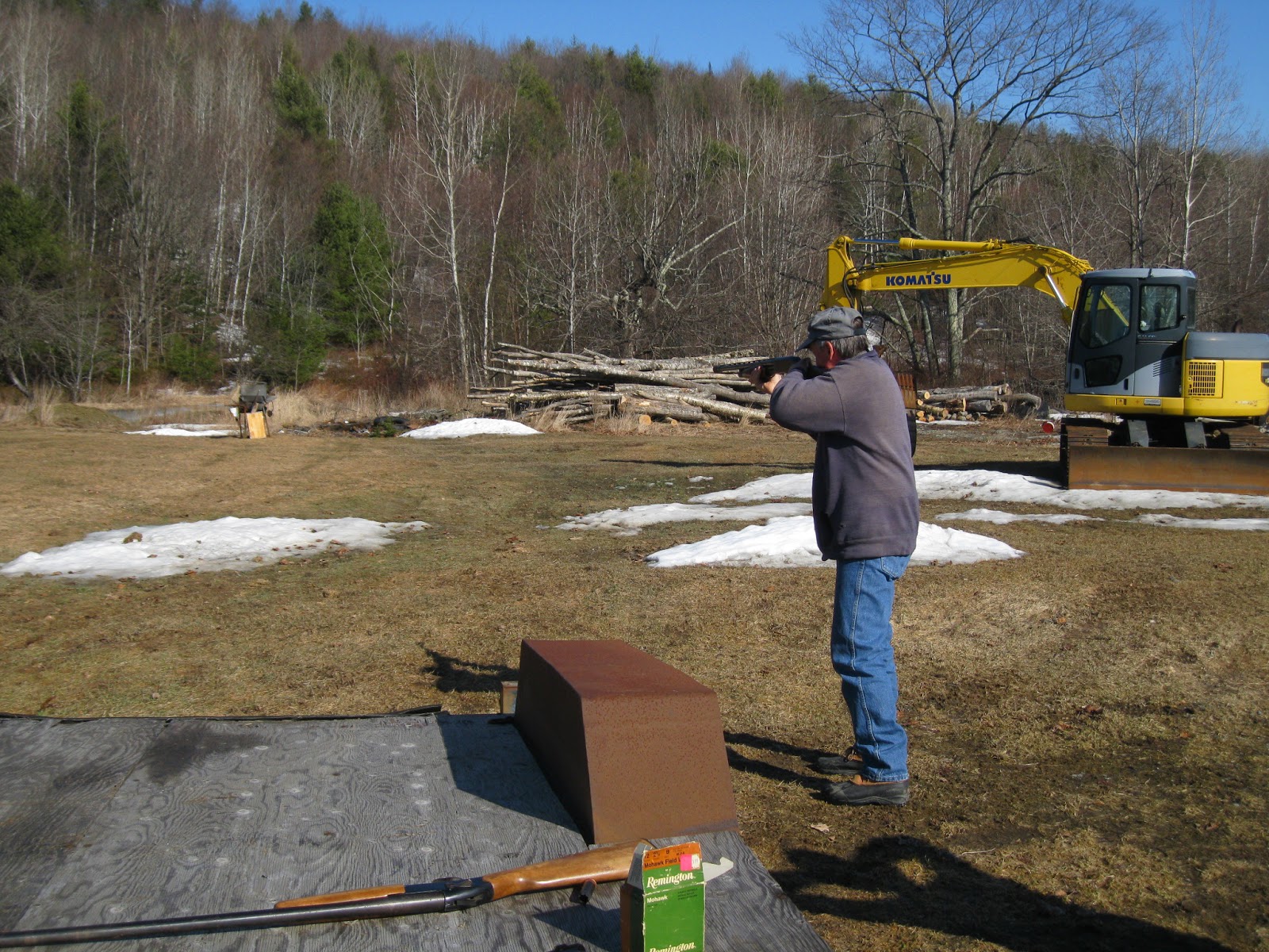 Dad took the first shot to make sure everything was working and firing the way it needed to. He said that the shells were sticking with the pump action (or maybe it was both of them), so he wanted to see if they would stick and he would need his knife to pop them out.