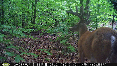 I still have a few trail cameras out to see what the deer are up to. I have gotten pictures of the big buck that is around and most recently, I got these pictures. Normally, I wouldn't be too freaked out but now that we have a dog, it is a little unnerving. Add that this camera is about 50 feet from our lawn and less than 100 feet from our front door... I hope that this one is just passing through. (Sidenote: I put new batteries in this camera so the date and time are wrong BUT I walked in front of it so it would take my picture and I could figure out what the actual time and date were: 7am Saturday morning.)