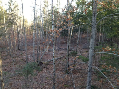 We went over to the mountain for the first part of the afternoon. I dropped Dad off along the roadway for him to walk up the east side of the mountain. I drove the truck a little further and dropped Hubby off so he could walk up the front of the mountain, then drove another mile or two into the woods and parked the truck, loaded up and headed up to the original tree house.