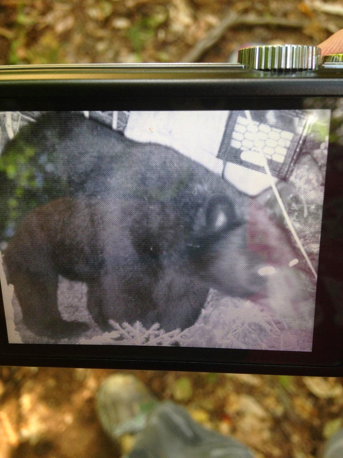 The day before I was going to drive up to meet with Steve and Lorri, I got a text from Steve: "GET MORE BULLETS." We had a behemoth bear coming in on a regular basis and when he compared it to his 420lb bear, he figured it was 500-600lbs.