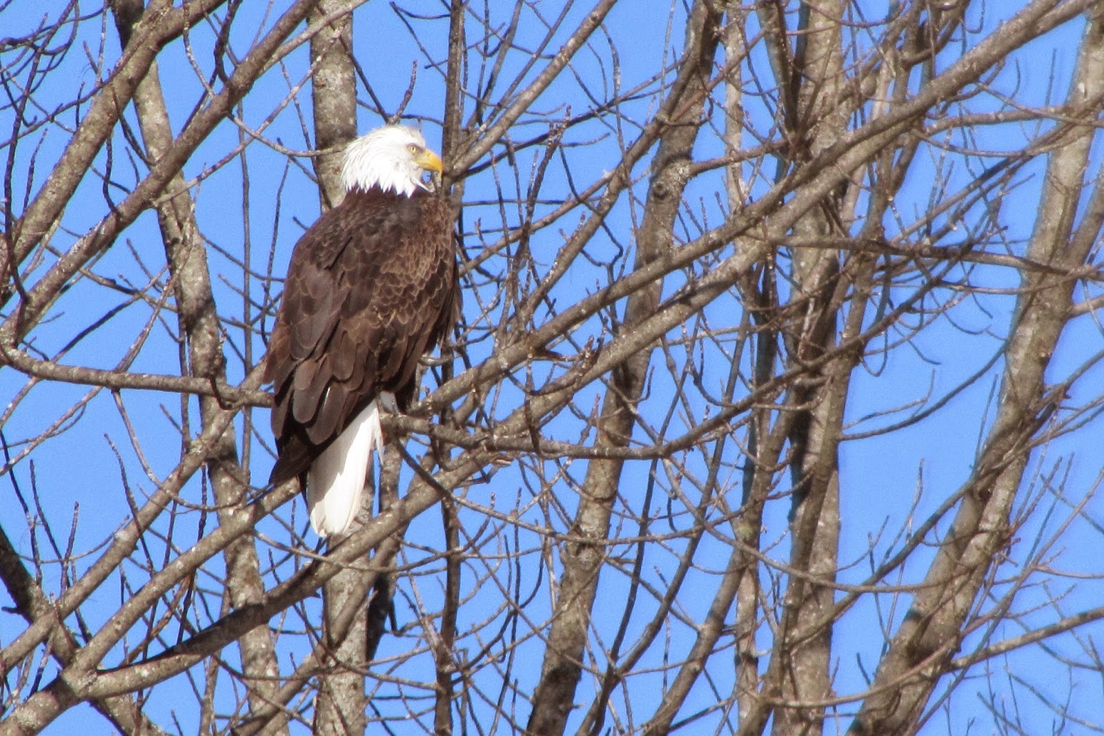 It is always fun to see a Bald Eagle, especially when you least expect it. I found this bird sitting in a tree, being carefully watched by two crows.
