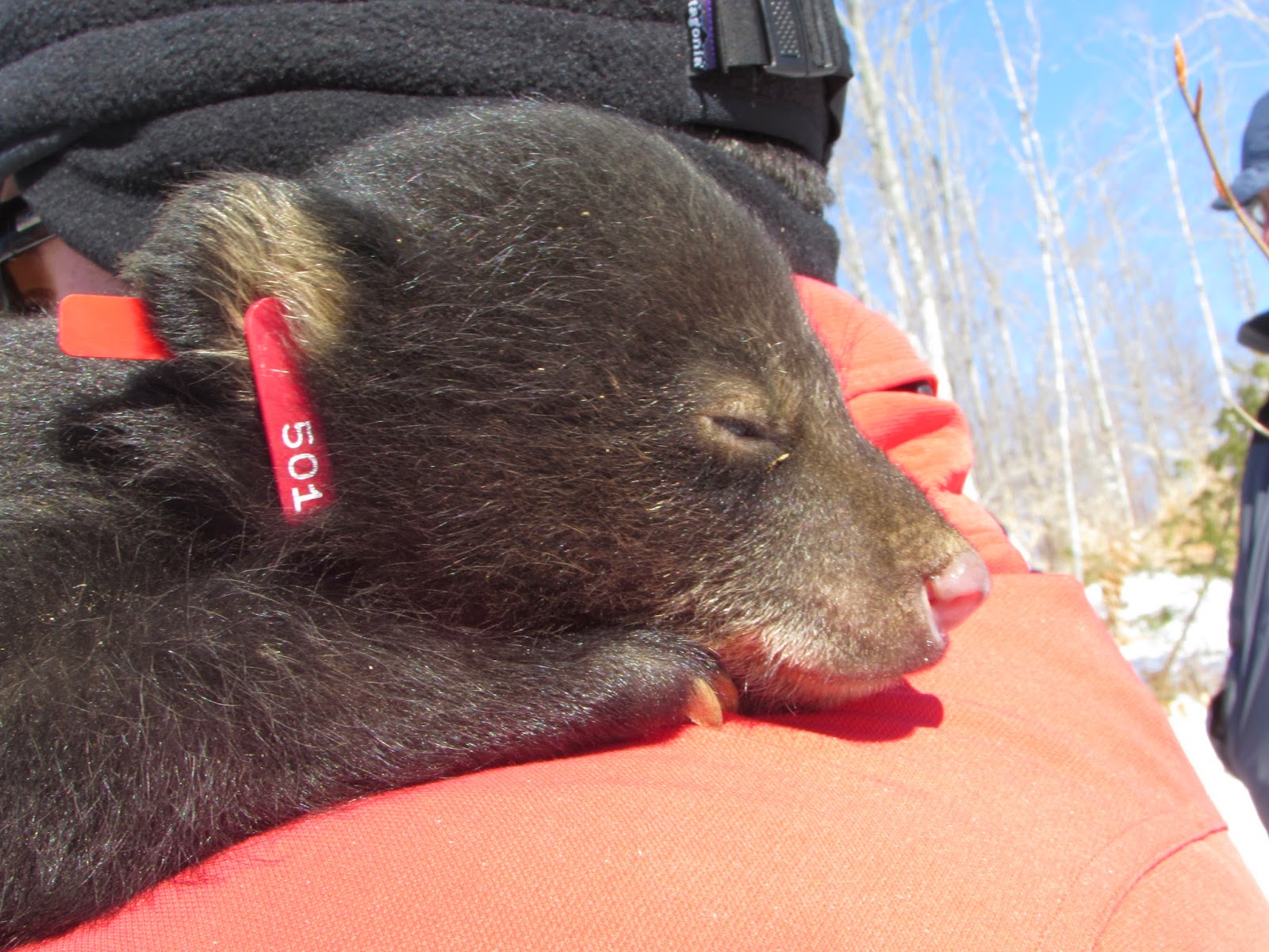 Cub tagged 502: female, 5 lbs, small white patches on chest, larger patch on right side.