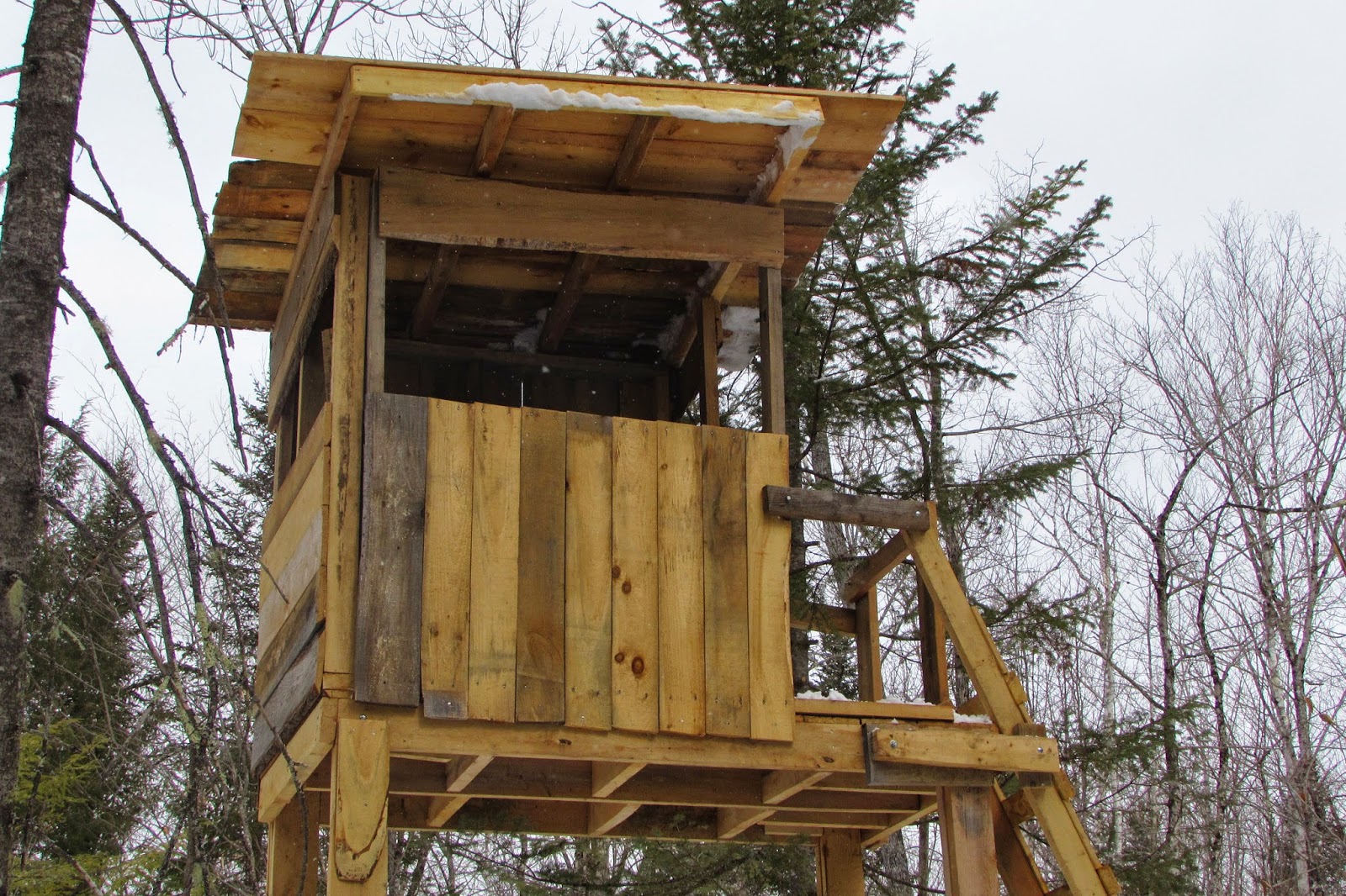 Let me really brag: I will have some shelves, a sun porch, a roof that sticks far enough out in the front to keep any rain away and we will put a heater in there. Before it's done, we will have gaps plugged, canvas down and carpeting on the back walls to keep it hard inside and keep some heat in. Basically, once we climb into this stand in November, there won't be a need to climb out until we either shoot a deer or the season ends.