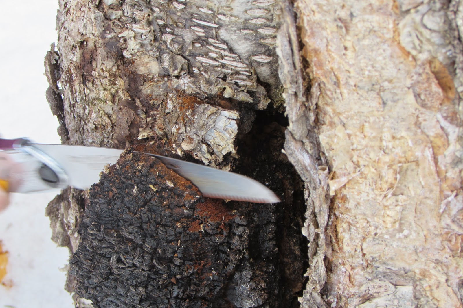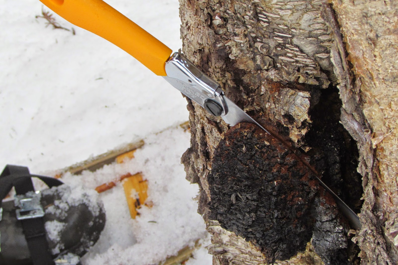 If you were out in the woods and saw this, would you be able to know it was chaga right away?  I was lucky that I had Robin with me and she was able to point it out with 100% certainty of what it was. She was also on top of things and brought a saw to get it off the tree.