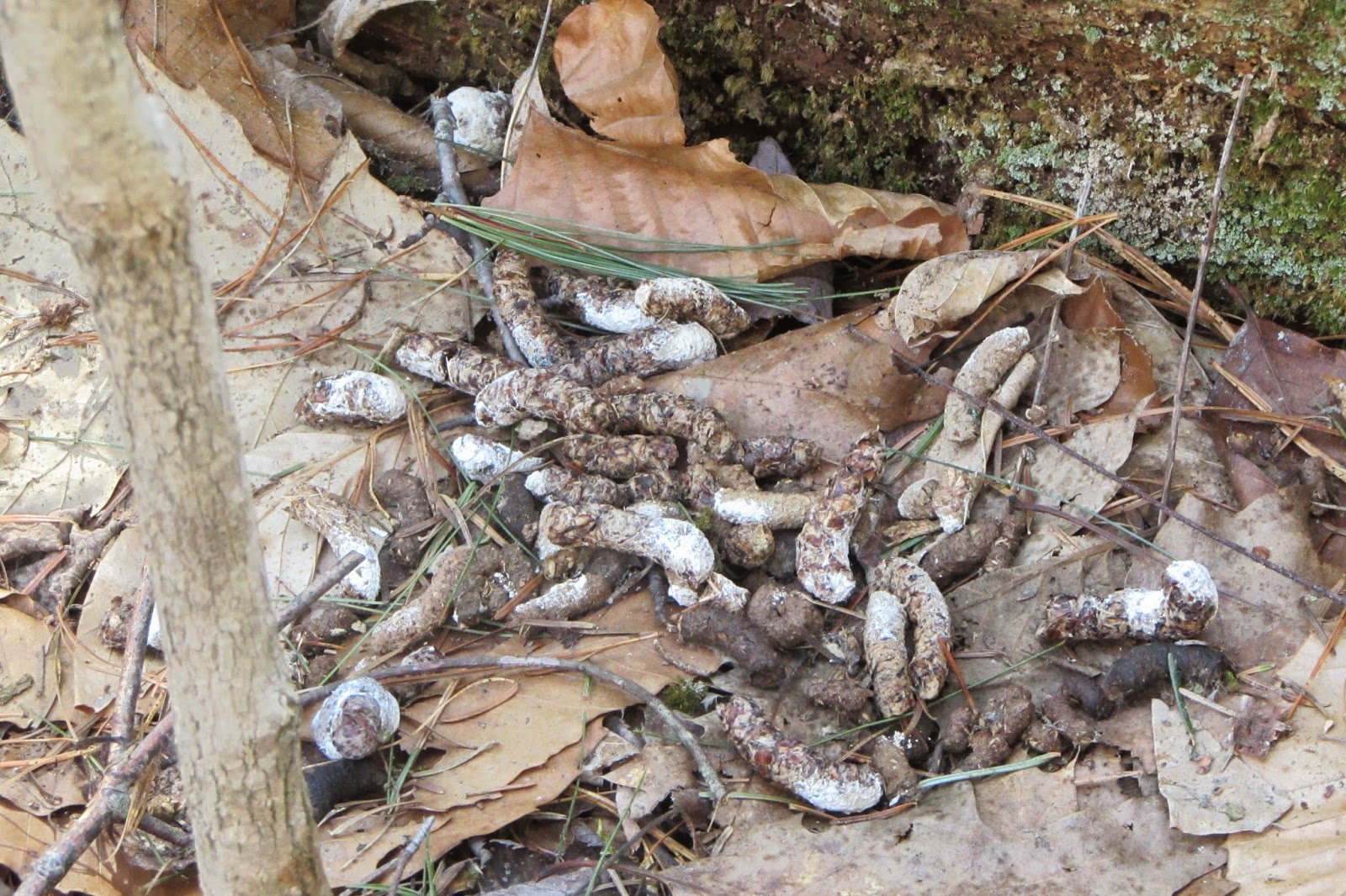 We spent a few hours in the woods last weekend and I came across this pile of scat on the side of an old log. It almost looked like the mystery critter could sit on the log and use it as a toilet seat.