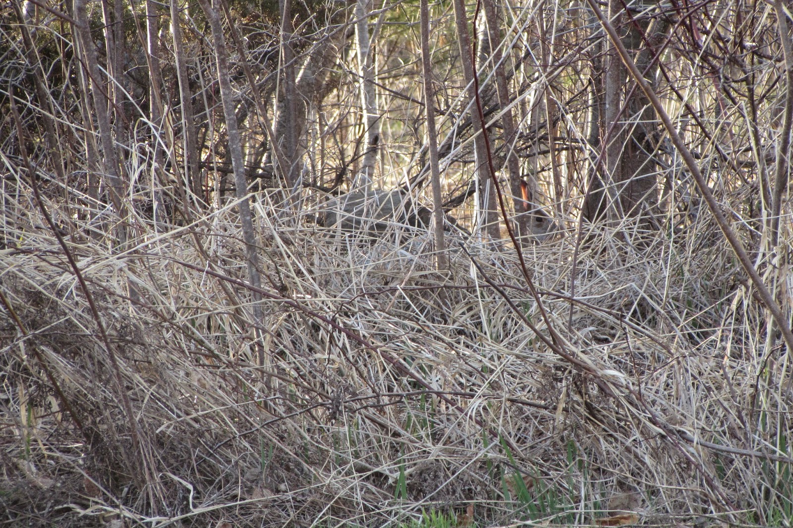 I snapped a few pictures of this critter as it scurried across the lawn.  It was hard to see when he was in the brush but I got a few good ones when he came back out onto the lawn and again the next morning.