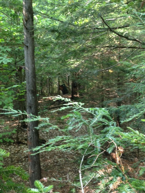 I didn't move. I just listened - and sent Steve a text saying that I was pretty sure there was a bear here (I got a text back telling me to get off my phone!) The bear went back to doing whatever he was doing in the bushes and I continued to listen, hoping that he would come into the opening. Once more, it came close enough for me to hear it breathing. During that time, more noise in the bushes behind me added to my awareness of the fact that I could not see what was happening around me. Hearing, what I thought were two separate bears, I made the assumption that it was the two yearlings who we had on the trail camera and neither would be worth taking so early in the season. I wasn't going to worry about taking a shot.