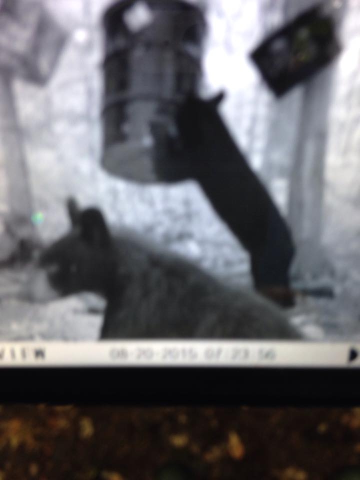 Steve checked out the area behind the stand the following day and said that a tree stump was ripped apart. It had definitely been a bear who was grubbing for food. Natural food. Yesterday morning, Steve checked the cameras and big bears had come into each site. One of them ripped the cable that was holding the 55 gallon drum, off the tree and out of the drum. For my own mental health and willingness to go back into the stand alone, I am going to say that it was these guys and not a huge bear, that was hanging out with me in the woods.