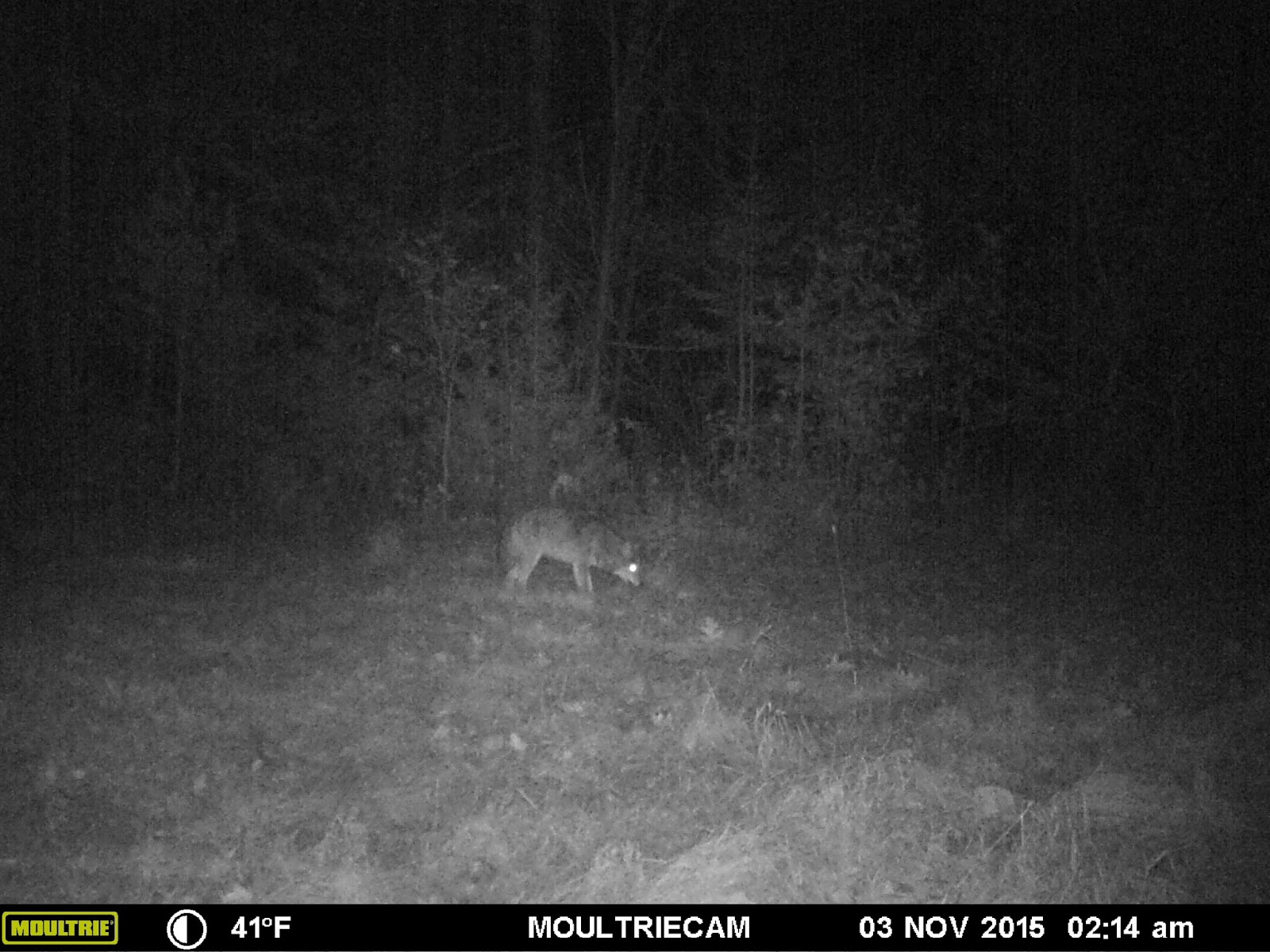I still have a few trail cameras out to see what the deer are up to.  I have gotten pictures of the big buck that is around and most recently, I got these pictures.  Normally, I wouldn't be too freaked out but now that we have a dog, it is a little unnerving.  Add that this camera is about 50 feet from our lawn and less than 100 feet from our front door... I hope that this one is just passing through. (Sidenote: I put new batteries in this camera so the date and time are wrong BUT  I walked in front of it so it would take my picture and I could figure out what the actual time and date were: 7am Saturday morning.)