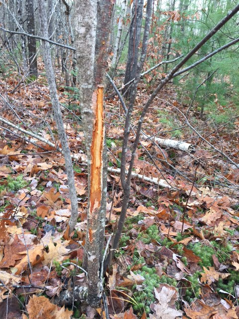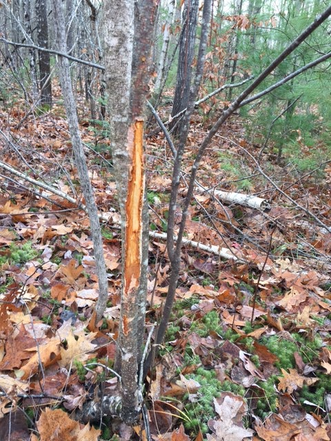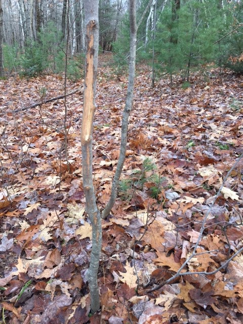 I was 20 yards through the brush when I saw the first new sign of bucks (besides these pictures.) A new scrape! Finally! But as I walked along the old snowmobile trail, I saw new rubs. I checked a certain spot that is known for having rubs but there was nothing there. Instead, there was a larger rub on a tree at an intersection between our own hunting paths. This buck was hanging out exactly where we were. We have to run into him at some point, right?