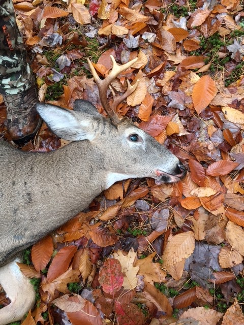 I couldn't take it any longer and after an hour of waiting, I packed my things up and headed to the Sky Condo. I found the guys in the woods, dragging the deer out. It was not the big crotch horn, but the new 6-pointer that had just started showing up on the trail camera. His points were blunt from either fighting or rubbing when he was still in velvet. Definitely not a bad deer to kick the season off with!