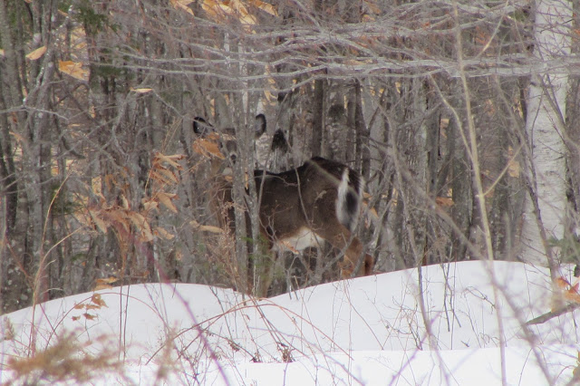 One doe never stopped watching us but the other two either didn't care that we were there or never realized it. We kept walking to T3 and made sure that we were not getting too close to the deer. There was enough winter left that we wanted to make sure that the deer were not using too much energy thinking that we were a threat.