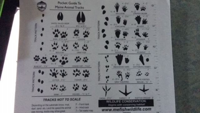 But, being the outdoorswoman that I am, I went to the IFW website and grabbed this actuate listing of the animals in Maine and their tracks. I made enough copies for everyone in the class (and a few extras) and brought it in the next morning. When my kiddo say the copies, he was concerned that I was giving away his track sheet but I assured him that we were just sharing the information with his friends.