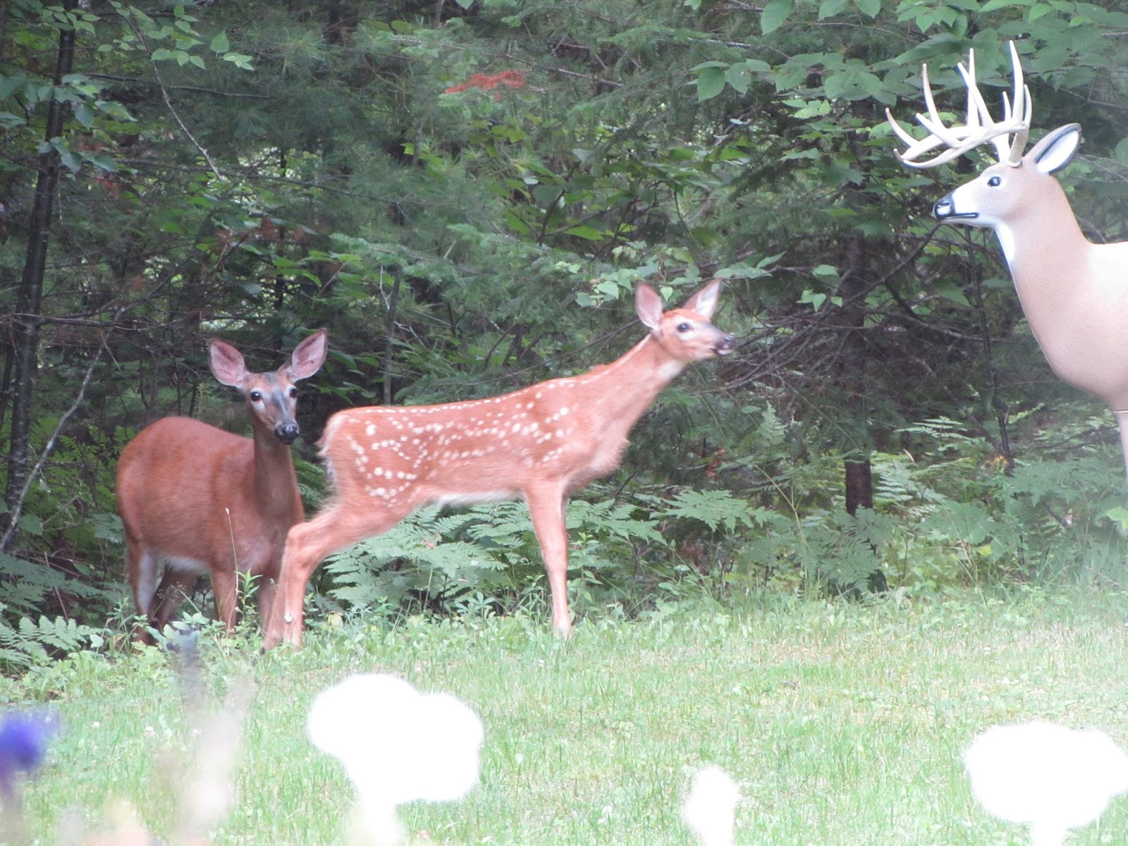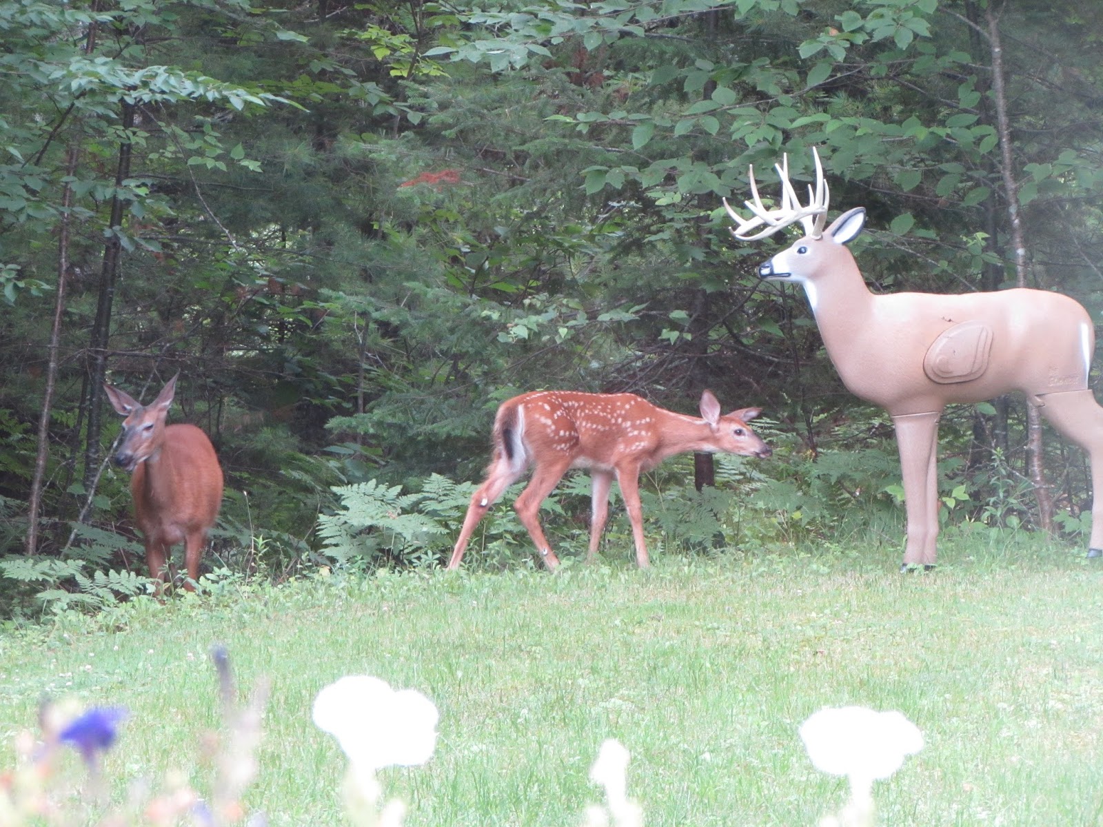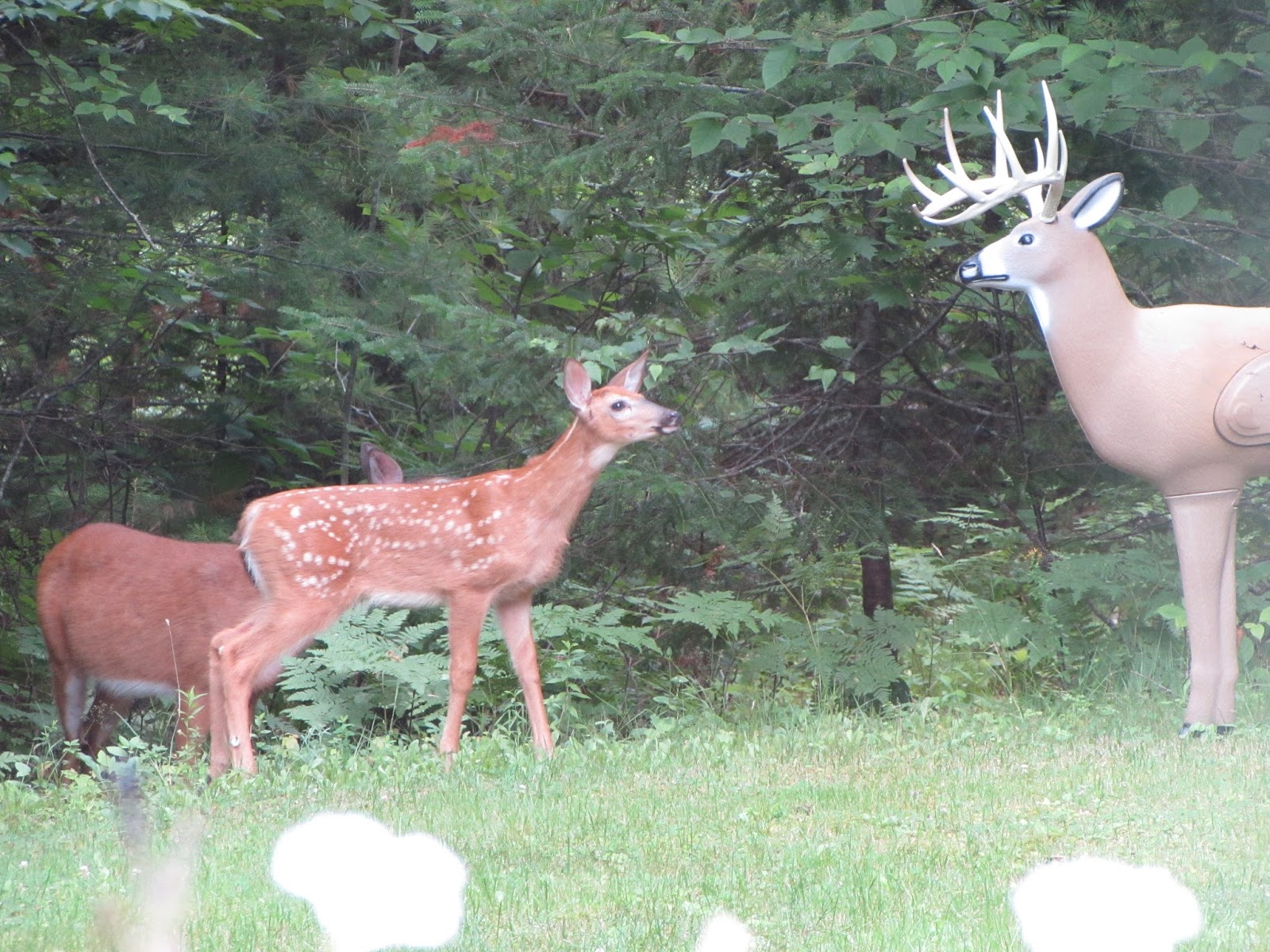 I am not sure if the target in the backyard has made the deer around here more relaxed or not, but for this fawn, it wasn't sure what to make of this thing that looks like a deer but doesn't move. If this target can fool these deer, I am wondering if we could use it as a decoy during hunting season... that is something that I will need to research!