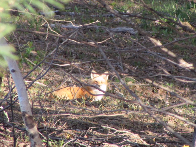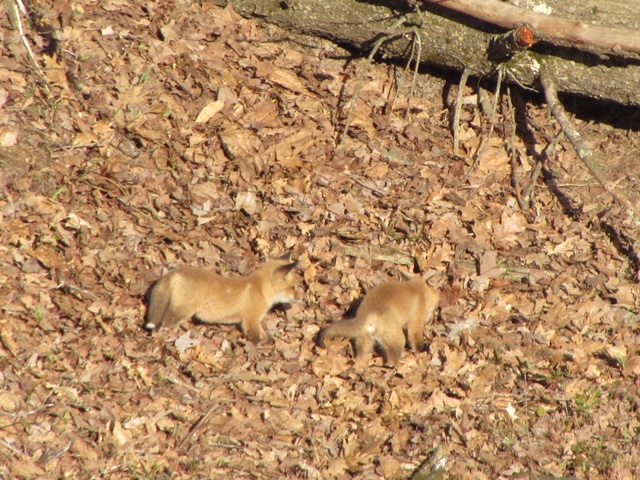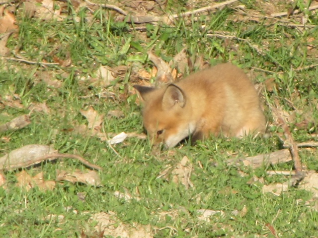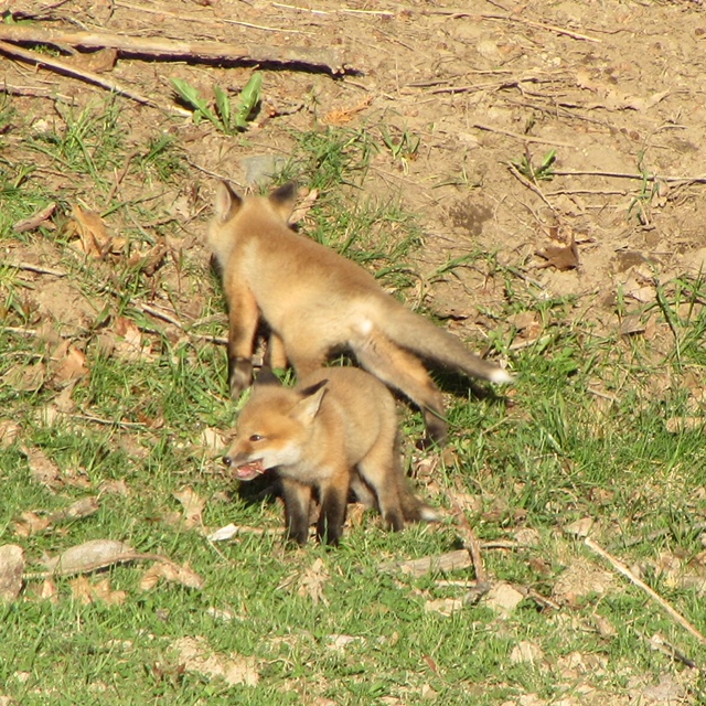 We got back in the truck and continued driving. The sun was coming up and we kept an eye out for the sleek, reflecting backs of turkeys in the fields. We were going slow enough that we were able to see a different animal out and about; fox kits!