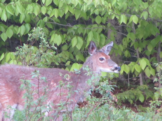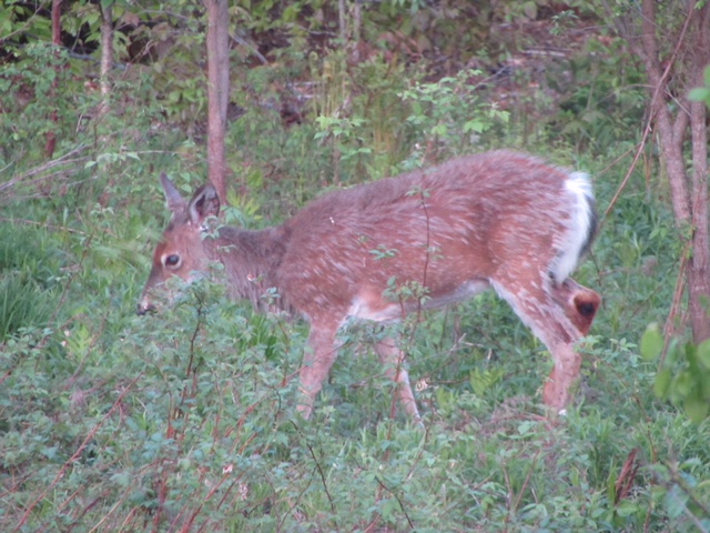 We moved to a new house about a month ago. The second night that we were there, a doe came out from the woods. Since then, we have had three does hanging around, one of which was VERY pregnant the last time we saw her (I am hoping for twins!)