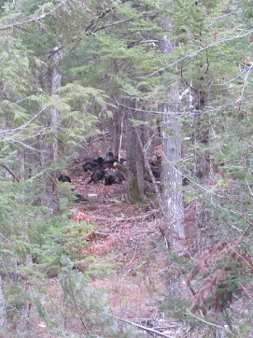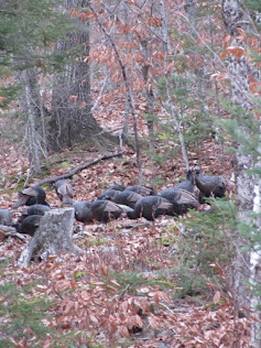 They set up in a shooting lane, eating acorns and moving closer, essentially blocking me in my stand. The flock would see me move and spook before I would have a chance to move my gun into a position to get a deer. I was stuck and they were coming closer.
