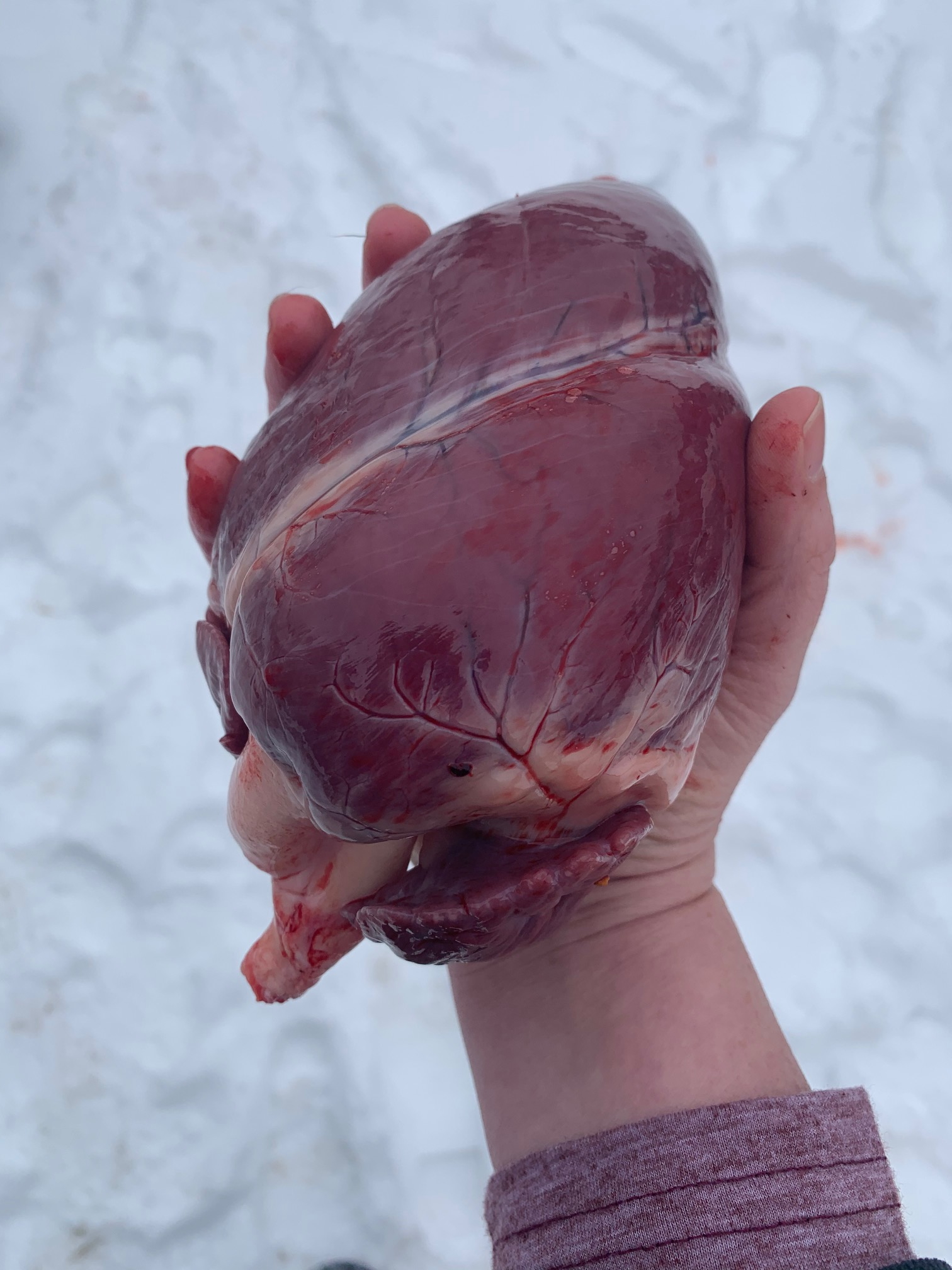 The emotions that go along with this are hard for any non hunter to understand. There is a literal weight of an organ that earlier in the day, beat inside an animal and the figurative weight of choosing to kill an animal to fill your freezer.