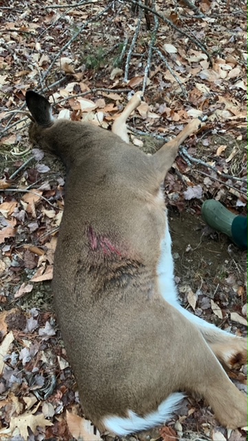 My excitement faded but my gratitude did not. It was not my preferred choice but I had done it. I made the choice to squeeze the trigger. We would still eat well and the freezer would be full. I was grateful for the opportunity. I had spent close to 65 hours in the woods waiting for the right opportunity to take a deer. I saw a coyote, doe and fawn, a spikehorn, white flags and a thousand turkeys.
