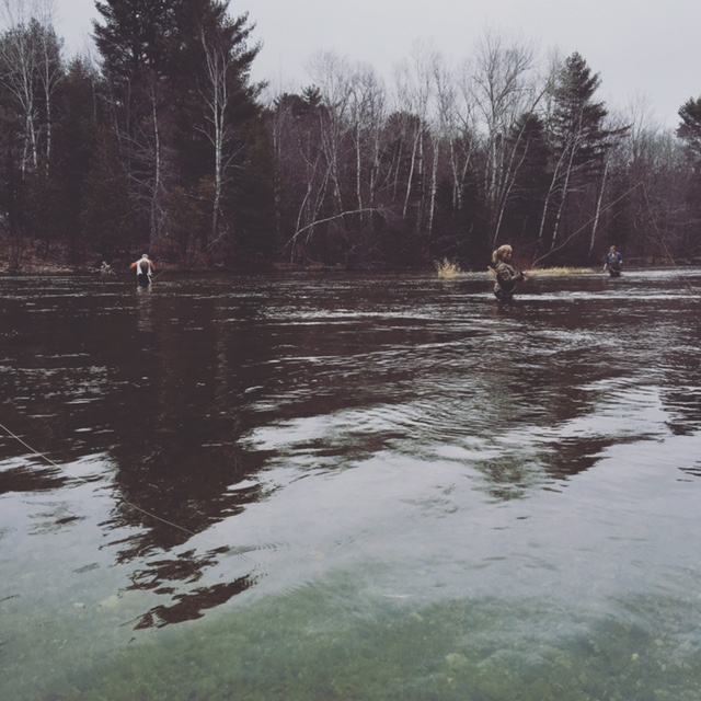 The next morning, the three of us ate a delicious breakfast (duck eggs and bear sausage!) and headed to the stream. Our second year being in the stream on April 1. I looked like I knew what I was doing which was a vast improvement from last year. It was also 30 degrees warmer that it had been so the extra layers were not needed.